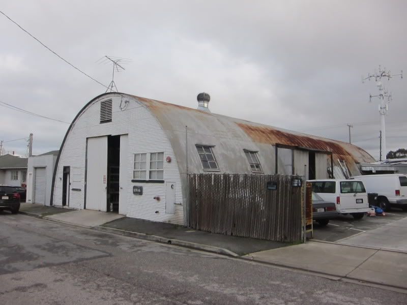 Just when we had given up hope of finding another quonset hut on the Peninsula, we stumbled across no less than four, a short distance apart, just off Old County Road in San Carlos. Here they are: